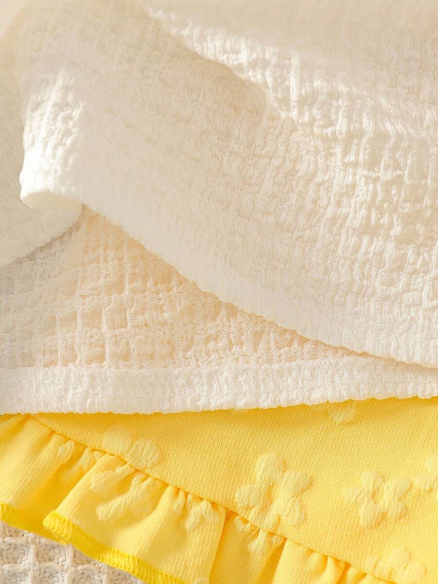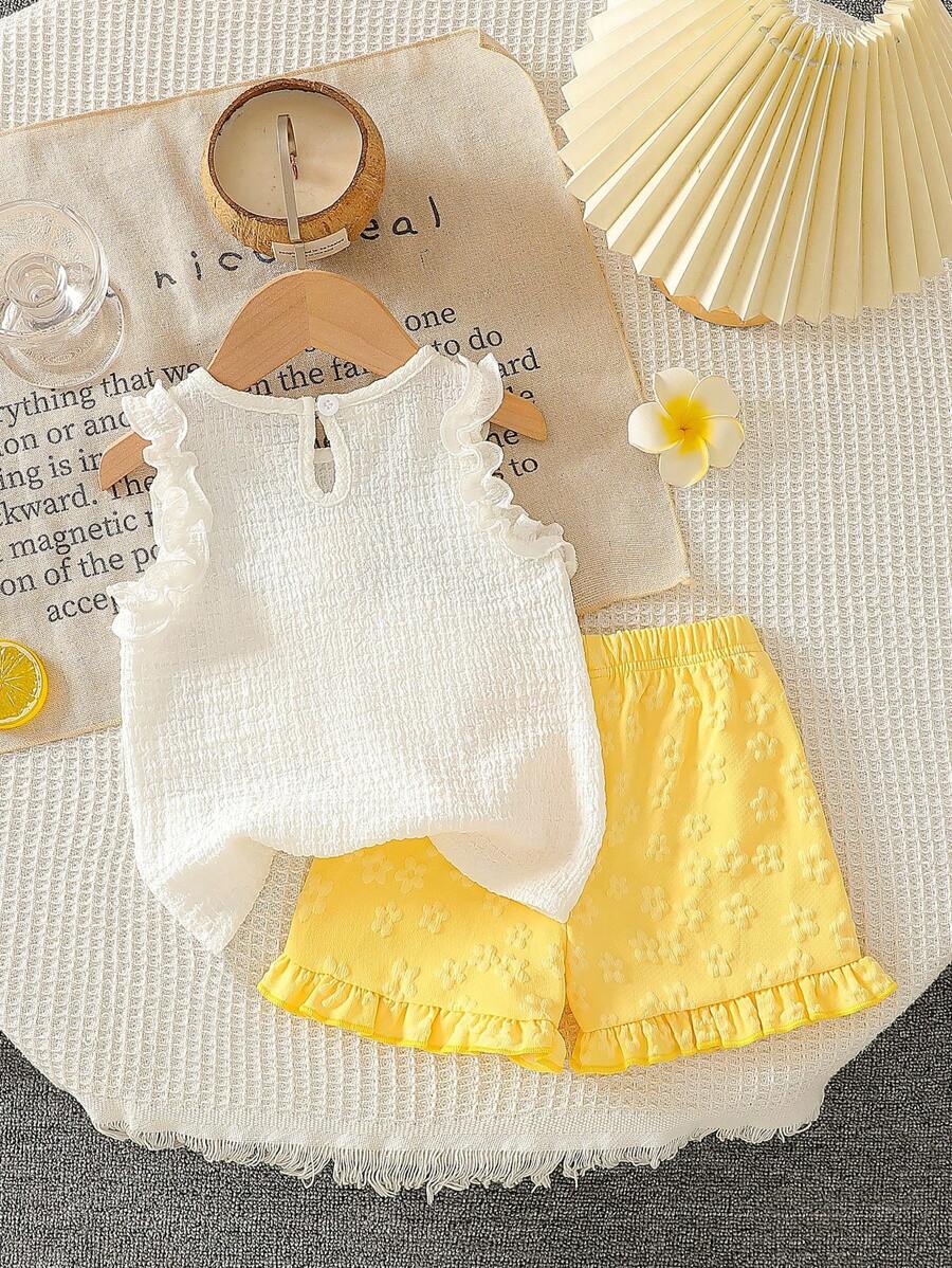 Baby Girls Sweet Cute Jacquard Tank Top And Jacquard Shorts Set, Spring/Summer