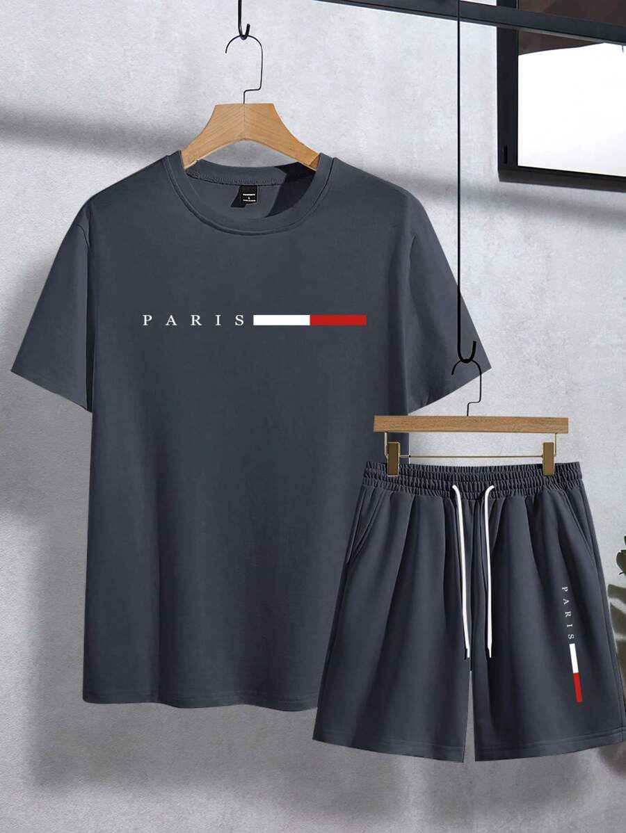Manfinity Homme Men's Summer Casual Letter Print T-Shirt And Shorts Set